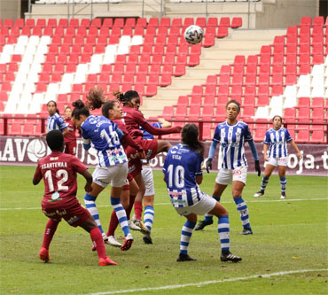 (6') Centro desde la derecha de Patri Ojeda que cabecea Dany Helena en el punto de penalti. Detiene Misa