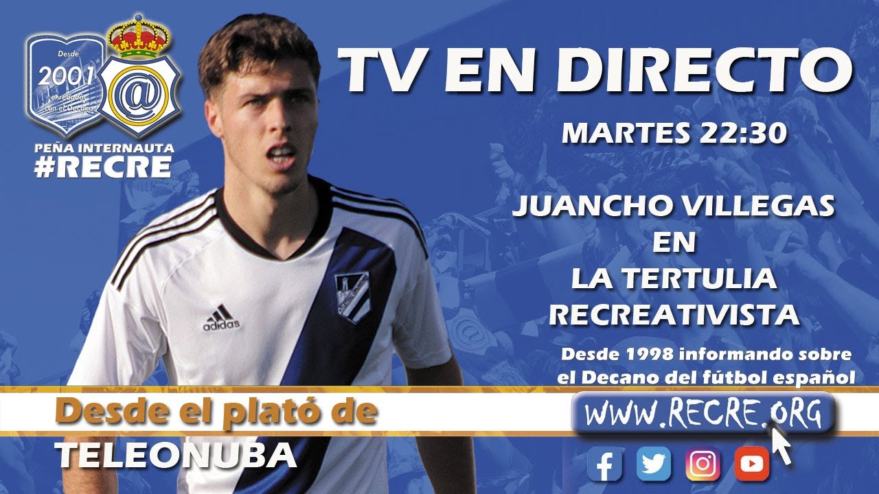 El central del Recreativo de Huelva Juancho Villegas será el invitado hoy en La Tertulia Recreativista, programa que cada martes a partir de las 22:30 horas en Teleonuba conduce José Luis Camacho Malo y su equipo de contertulios para analizar la actualidad del Real Club Recreativo de Huelva.