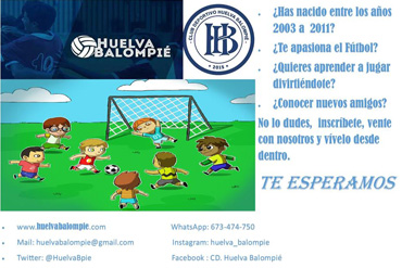 El Club Deportivo Huelva Balompié, formado en 1905, tiene abierto el plazo de inscripción para todos aquellos niños nacidos entre 2003 y 2011 que quieran iniciarse en el mundo del fútbol en él.