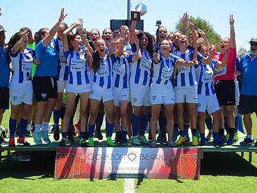 El equipo cadete-infantil del Sporting Puerto de Huelva fue homenajeado en los prolegómenos del encuentro de la Liga Iberdrola entre el primer equipo sportinguista y el C.D. Escuelas de Fútbol de Logroño. Las canteranas salieron al terreno de juego con motivo de la consecución la semana pasada, a falta de tres jornadas para el final de la competición, de la liga en su categoría de Segunda División Andaluza.