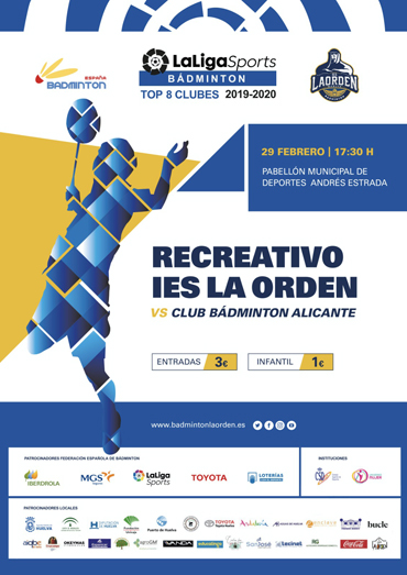 Será el cierre de la fase regular, un encuentro que el Recreativo Bádminton IES La Orden espera con ganas y que supondrá la antesala a la lucha por un nuevo título. Así, los onubenses se enfrentarán el próximo sábado al Alicante en lo que será la decimocuarta jornada de la Top 8 La Liga Sports, y que tendrá lugar a partir de las 17:30 en el Polideportivo Municipal Andrés Estrada.