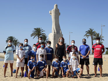 Esta mañana, la presidenta de la Autoridad Portuaria, Pilar Miranda, ha visitado a los niños, con edades comprendidas entre los 8 y 16 años, en el segundo ciclo del Campus de Fútbol Playa de Huelva, que comenzó en julio y que concluirá, en esta segunda fase a mediados de agosto.