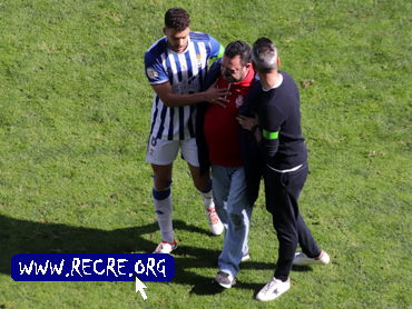 Al salir a atender a Domínguez durante el partido ante la U.D. Melilla